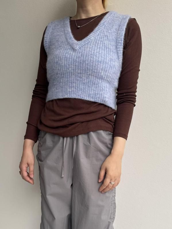 涼しげに見えつつ、しっかり暖かさも感じられる肌に優しいパウダリーなドライタッチが特徴。長い季節着て頂ける素材感。