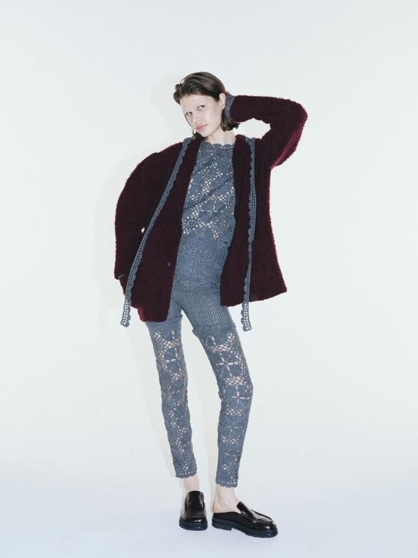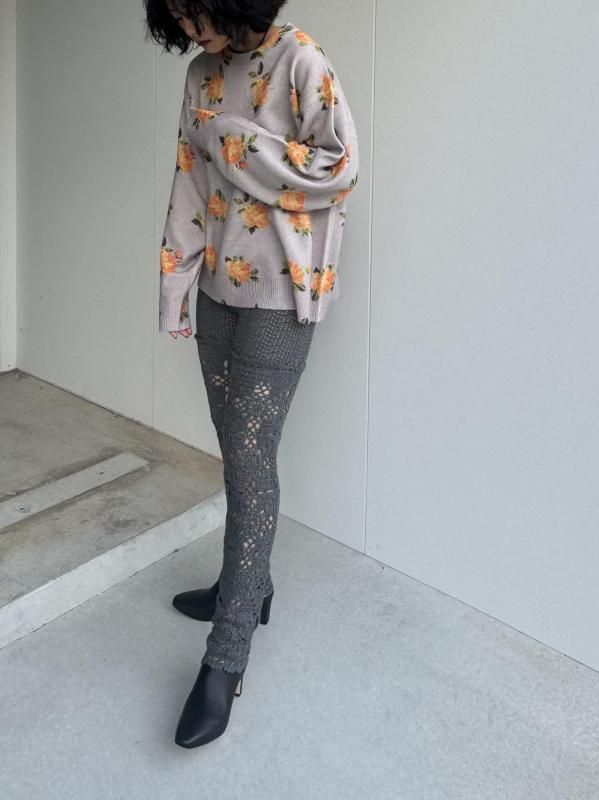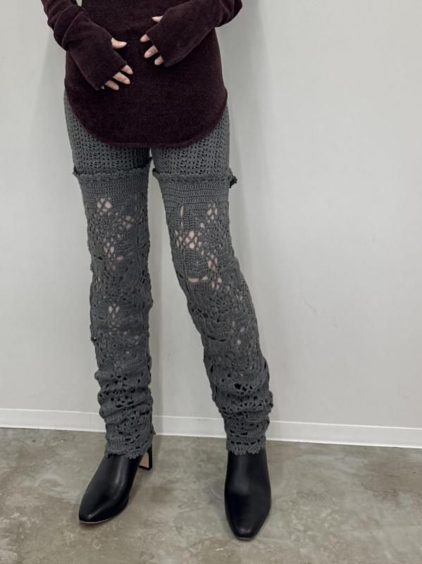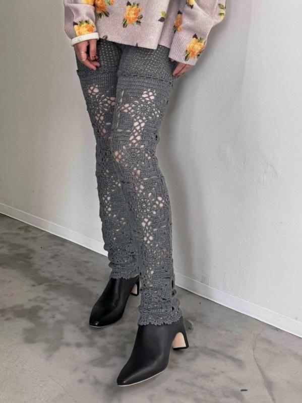 繊細なハンドクロシェレースが目を奪うニットレギンス。