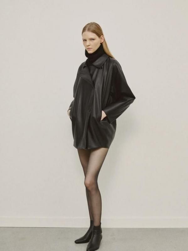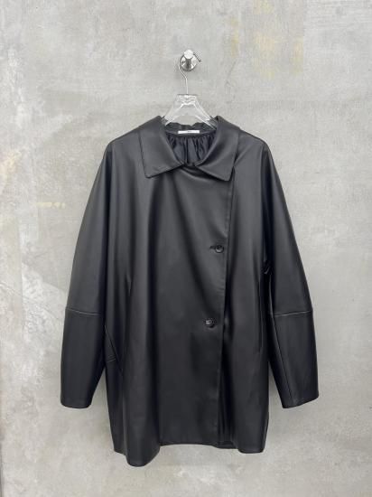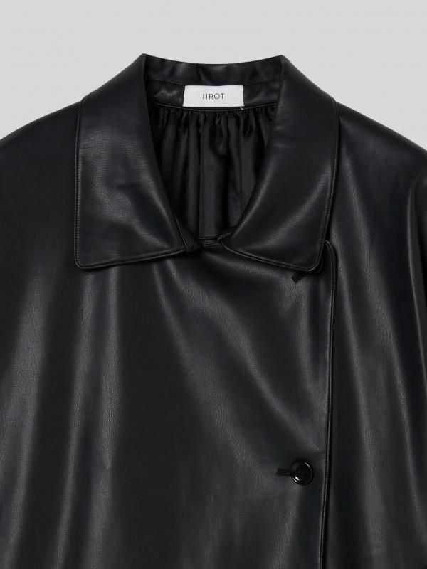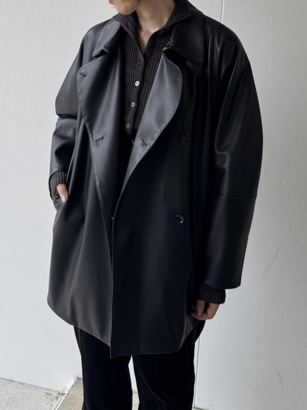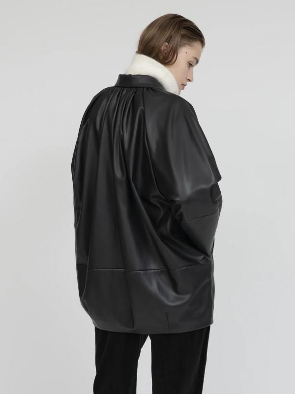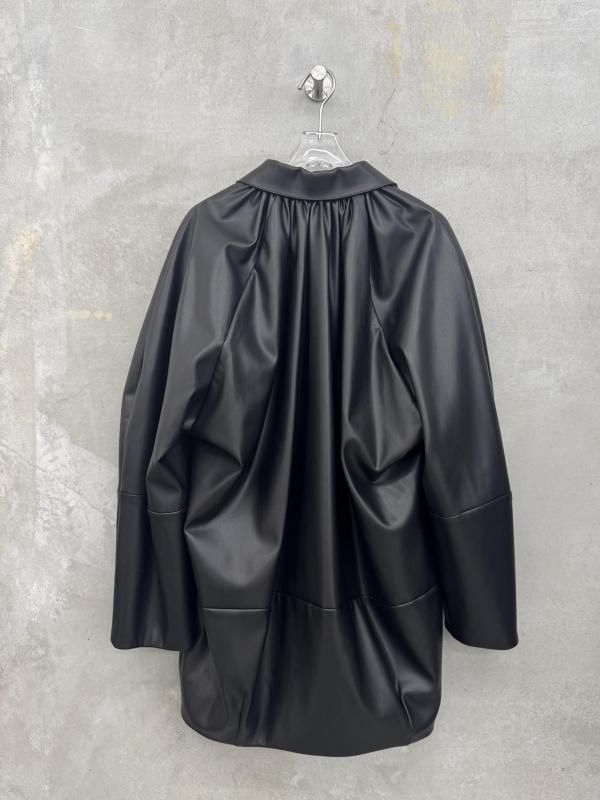 スムースな質感のシンセンティックレザーを使用したコクーン型のジャケット。