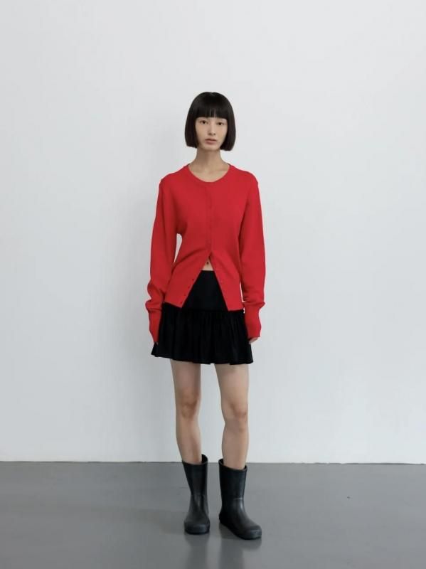 複数のボタンがポイントになり、ボタンの閉め方によって様々なスタイリングが可能