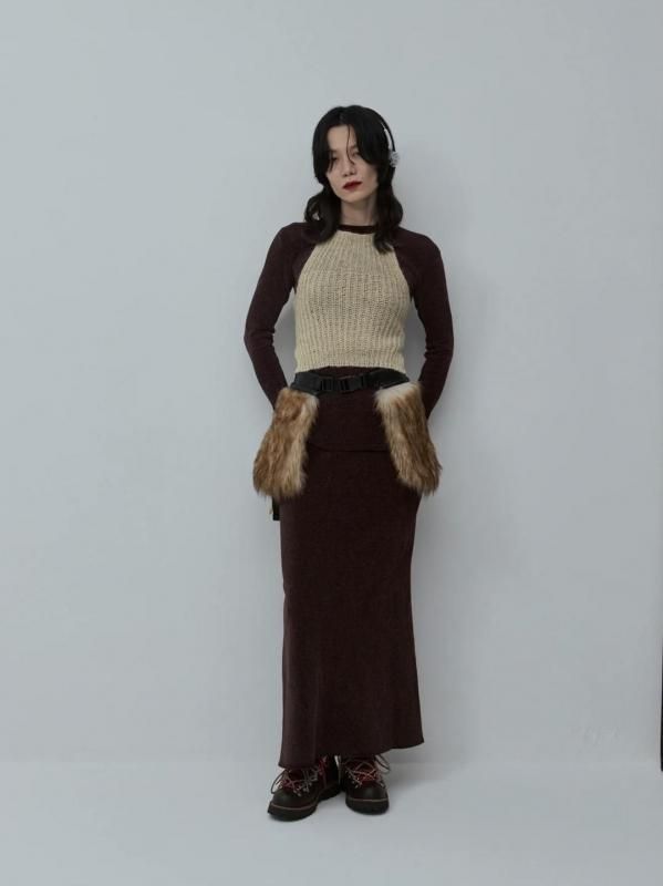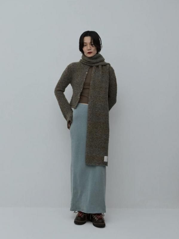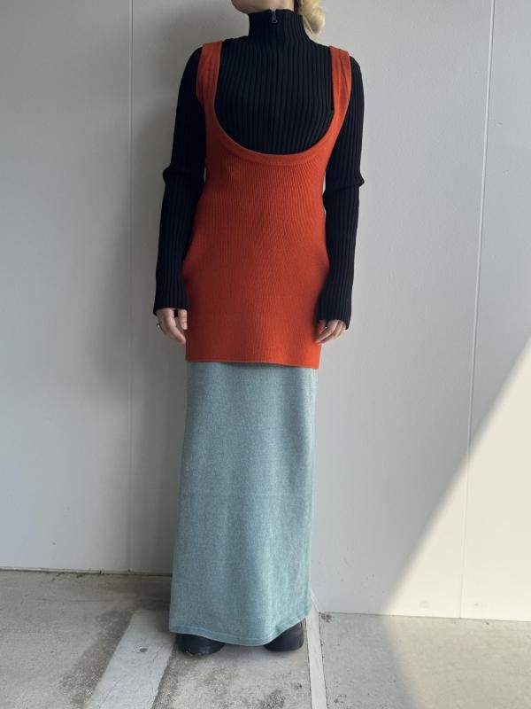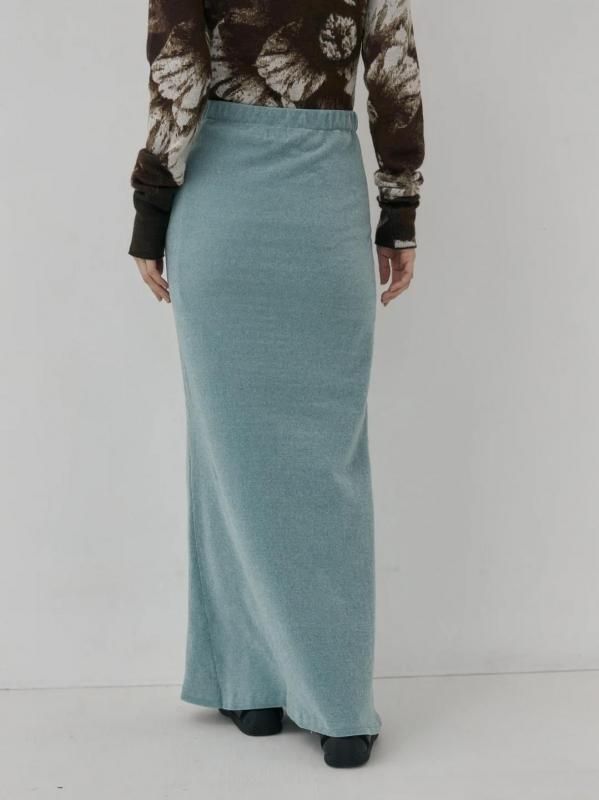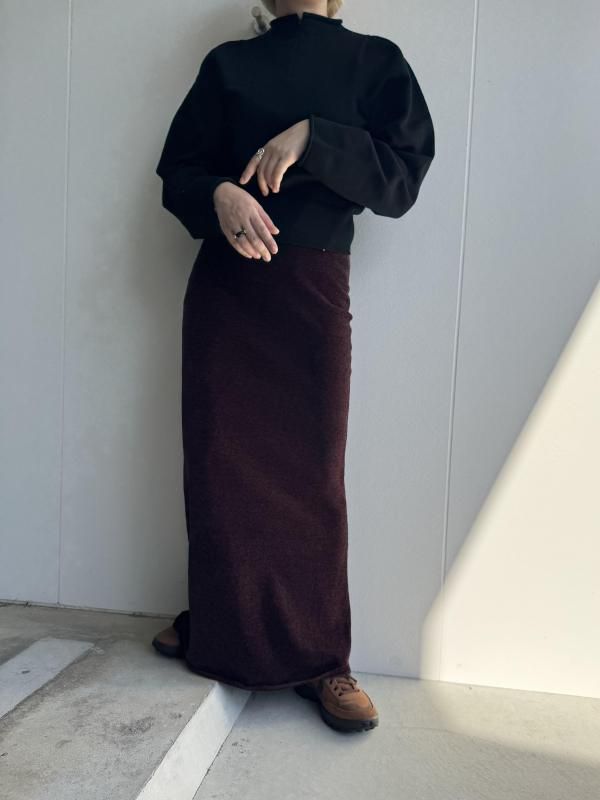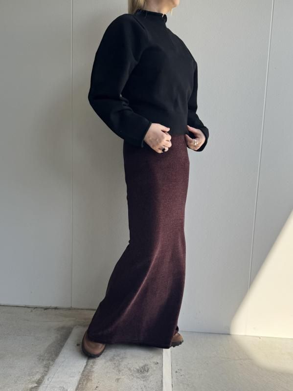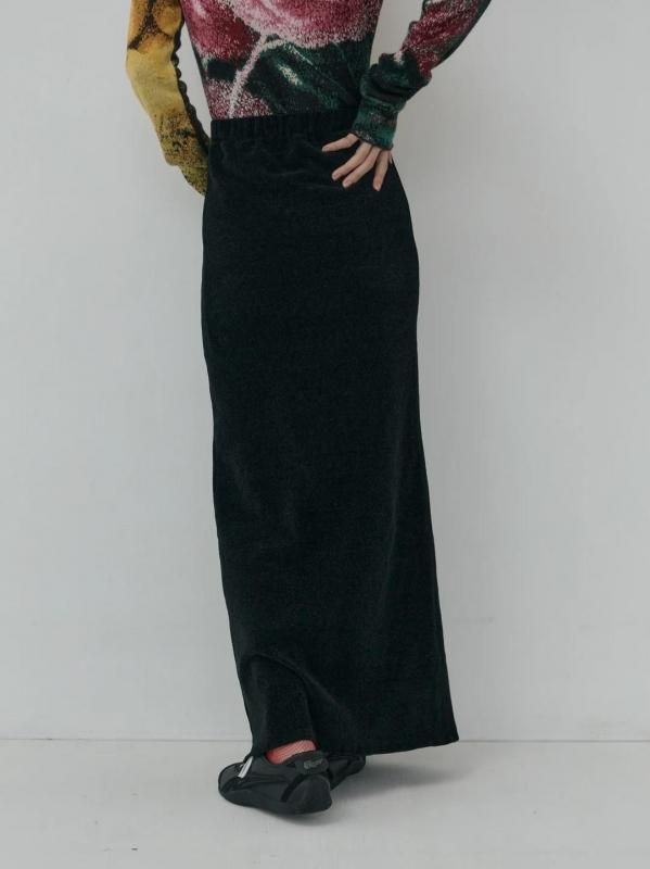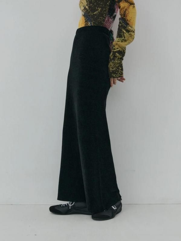 ベロアのような質感とストレッチが心地よいIラインのマキシスカート。