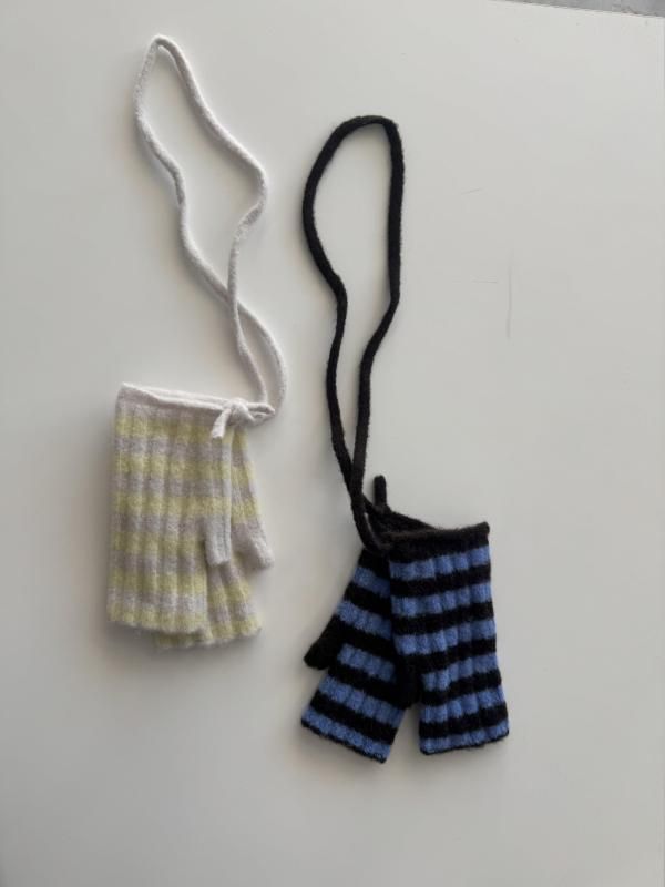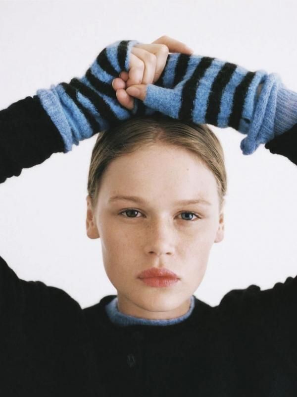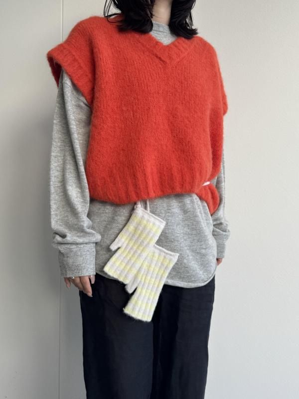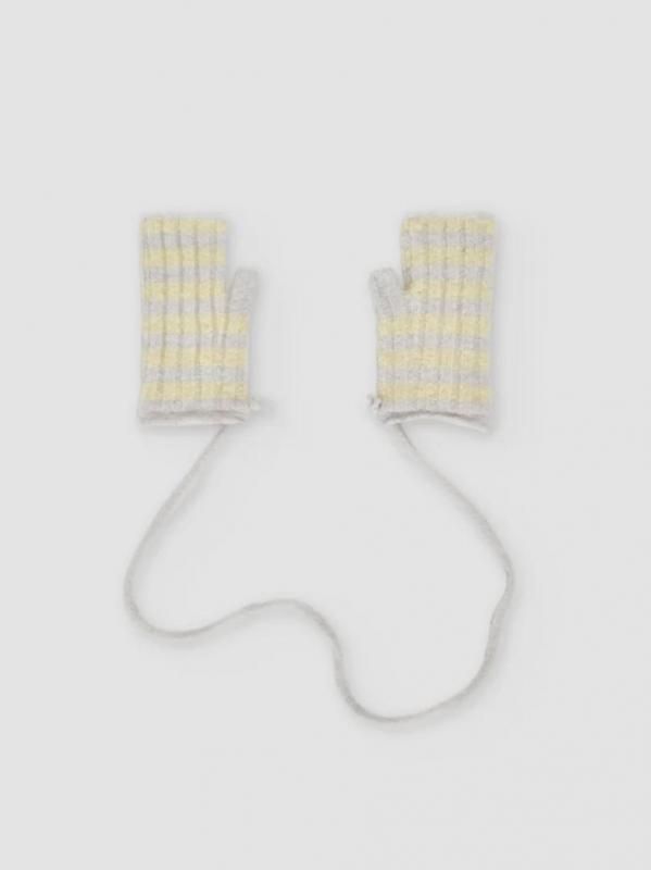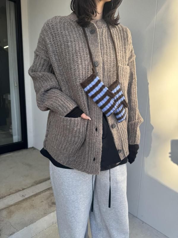 手首の長さのリブ付きミトン。 柔らかくてファジーなベビーアルパカブレンドでさらなる暖かさを実現。