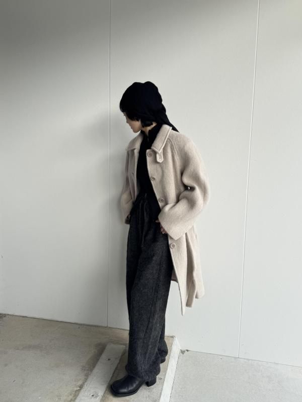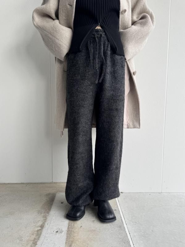 ヘアリーなアルパカ素材を使用し、ユニークな質感を引き立てたバンディングパンツ。