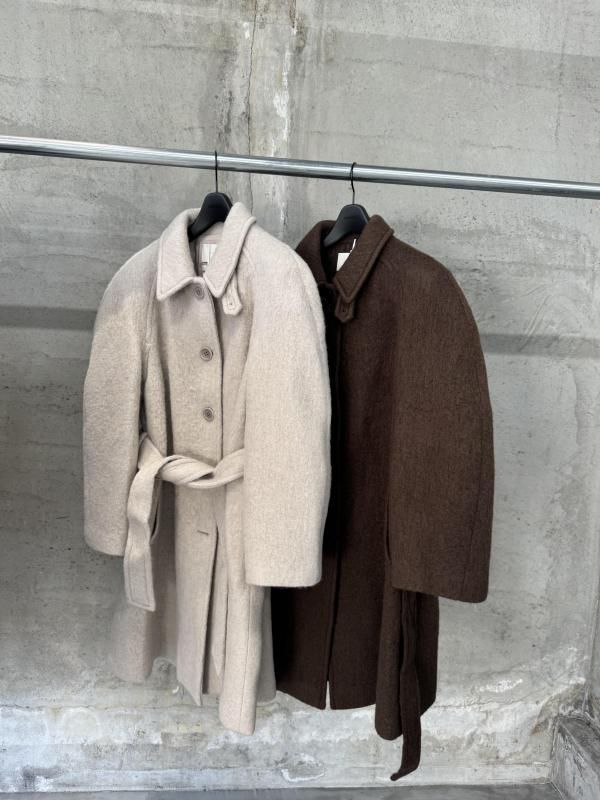 アルパカとウール混紡素材で心地よい雰囲気を表現したハーフコート。