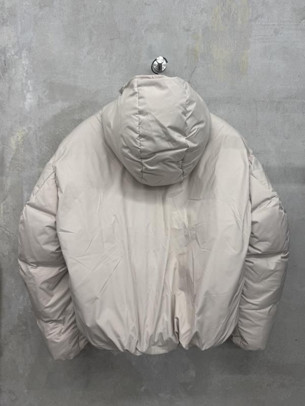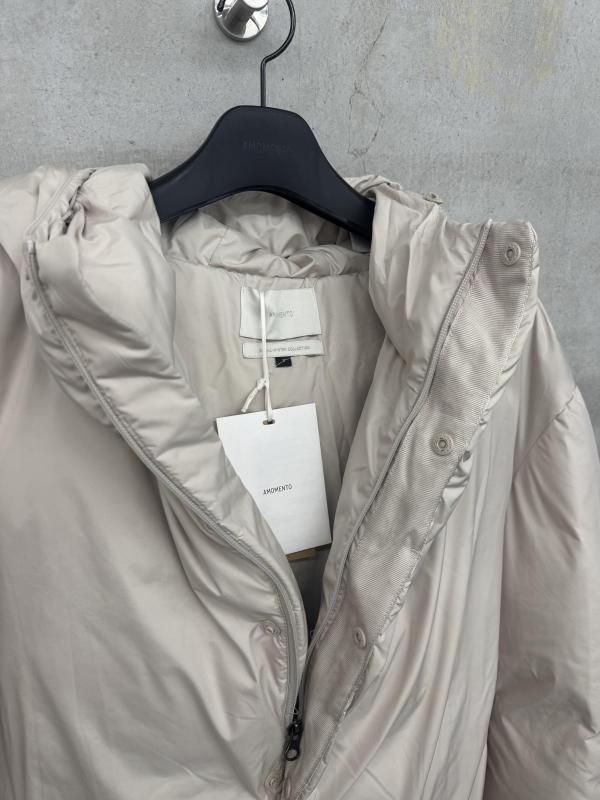顔を暖かく包み込む大きなサイズのフードが目を引き、隠しスナップとジッパーポケットでミニマルなデザイン。