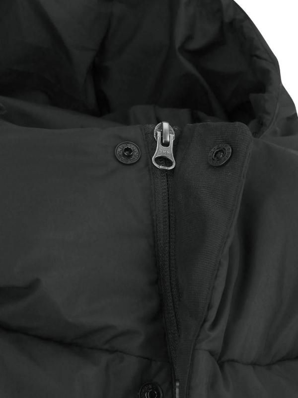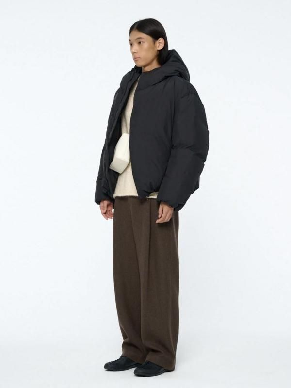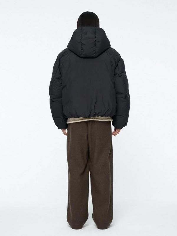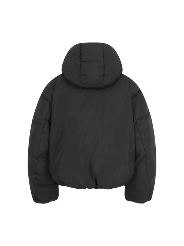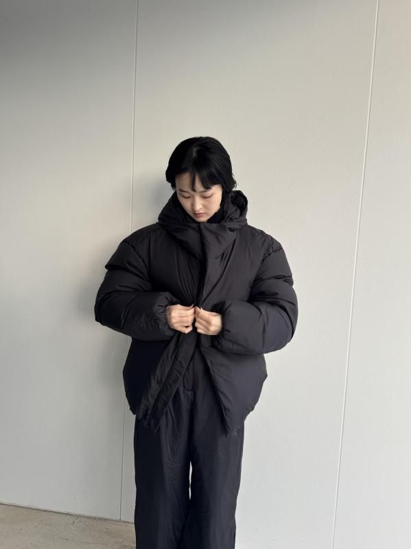 顔を暖かく包み込む大きなサイズのフードが目を引き、隠しスナップとジッパーポケットでミニマルなデザイン。