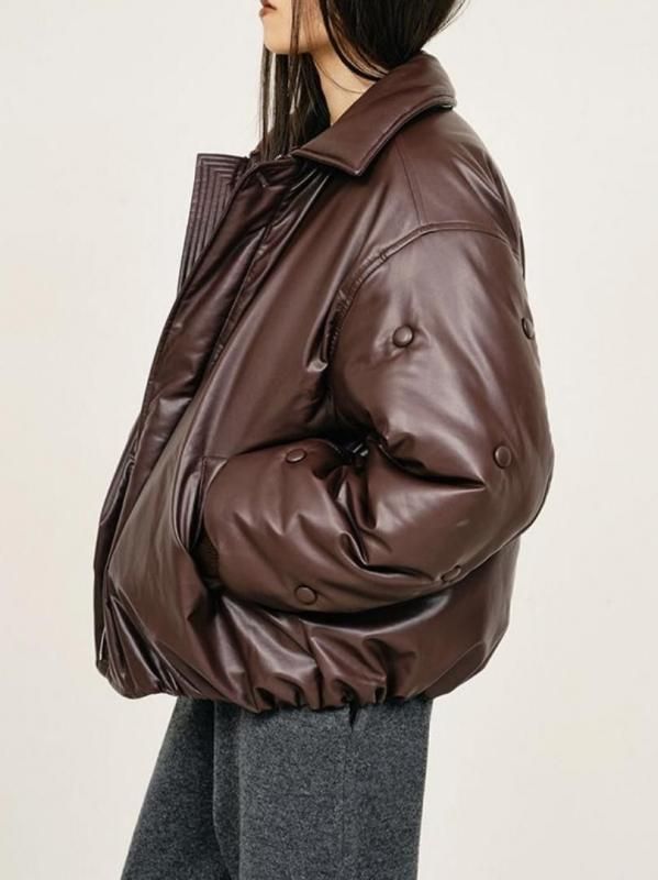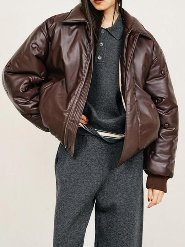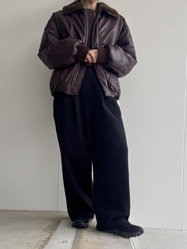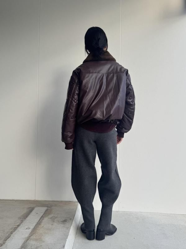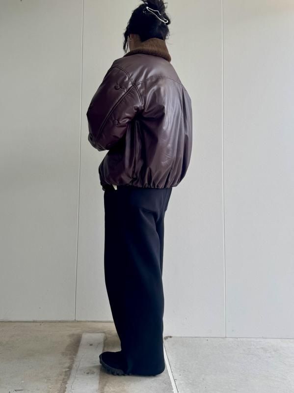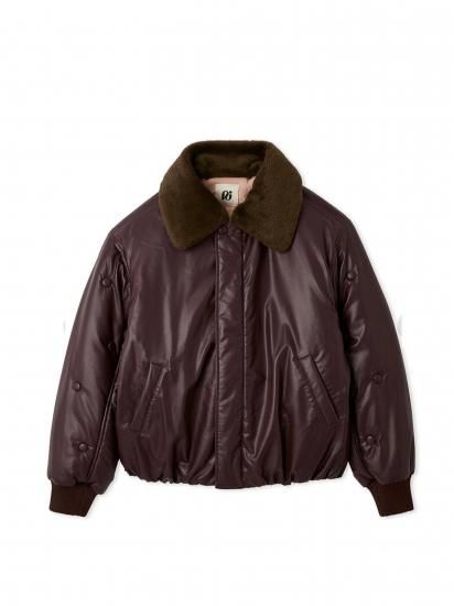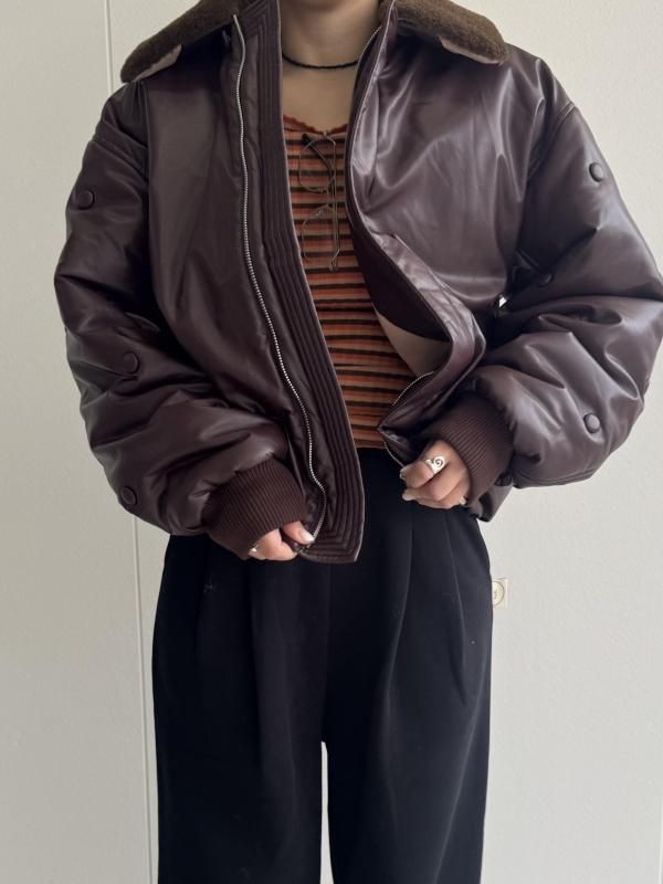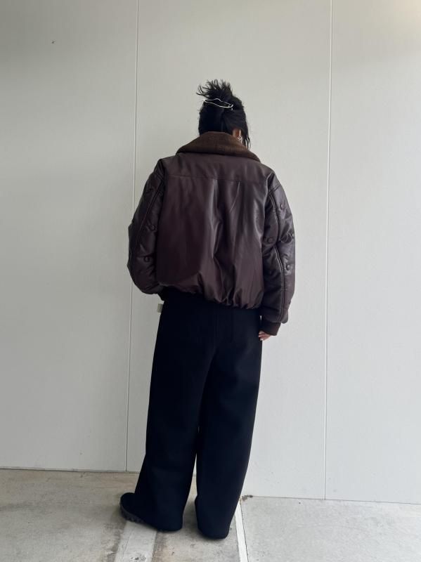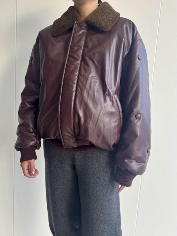 袖部分をボタンデザインあしらったフェイクレザーMA1ジャケット。